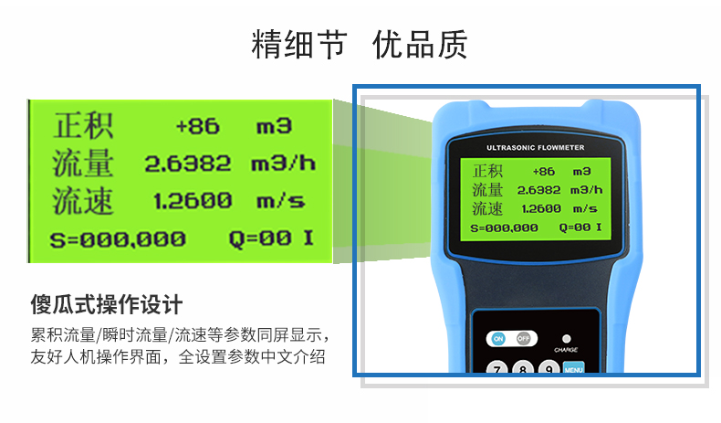 產(chǎn)品特點:高精度、背光顯示、寬口徑通用;瞬時、累計、流速同屏顯示;電池、220V供電;帶RS485通訊輸出。