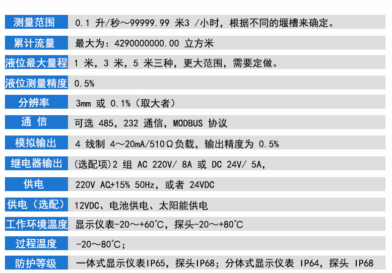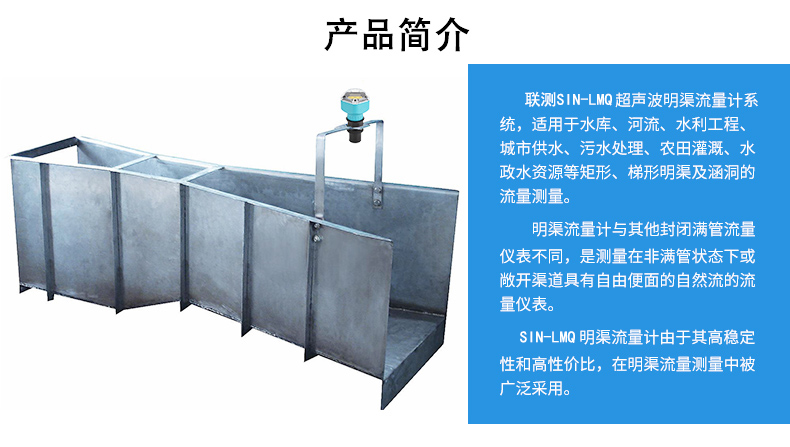 超聲波明渠流量計與量水堰槽配合使用,測量明渠內(nèi)水的流量。主 要用于測量污水廠、企事業(yè)單位的污水排放口、城市下水道的流量及農(nóng) 田水利中的渠道等。