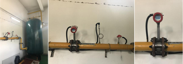 在這次工況上,聯(lián)測生產(chǎn)的渦街流量計(jì)應(yīng)用在100口徑壓縮空氣主管道上進(jìn)行計(jì)量。由于單層紙張輕薄用人工難以精準(zhǔn)拉取到工位上,金紅葉研發(fā)自動工位裝置,通過連接主管道的壓縮空氣支管,進(jìn)行精準(zhǔn)噴氣定位紙張位置。由于支管管徑較小,用氣量無法精準(zhǔn)控制,聯(lián)測工程師與金紅葉協(xié)商,最后決定在總管道上安裝渦街流量計(jì),進(jìn)行壓縮空氣精準(zhǔn)計(jì)量。