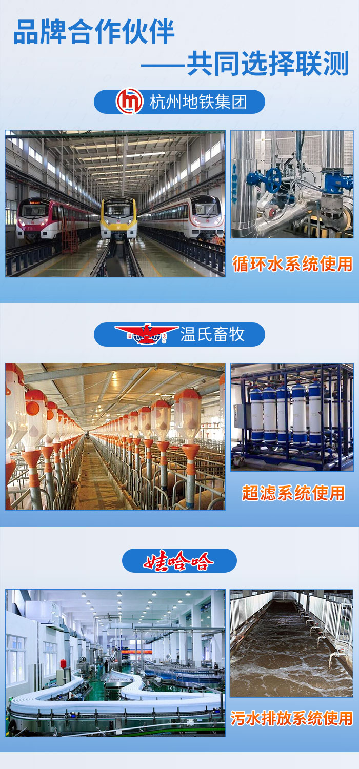 近年來,聯(lián)測儀表廣泛應(yīng)用于各大領(lǐng)域,與國內(nèi)品牌杭州地鐵集團、溫氏畜牧、娃哈哈......達成合作,專業(yè)的技術(shù),敬業(yè)的服務(wù)贏得了諸多企業(yè)的信賴與支持。本次合作也給客戶留下了良好的印象,好評連連,溫州繞城高速公路有限公司表示,后續(xù)多個站點會批量使用我司電磁流量計。
