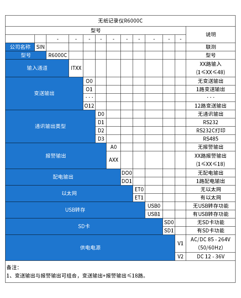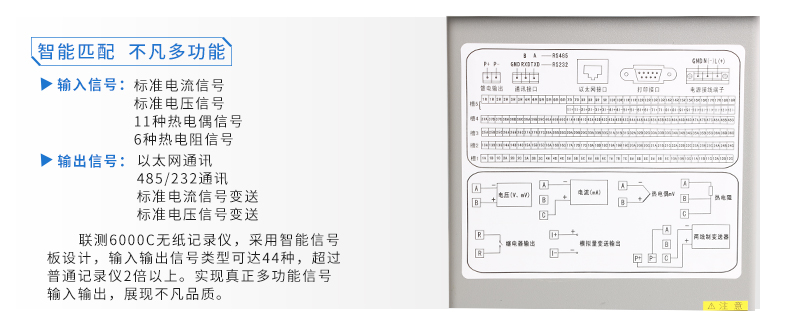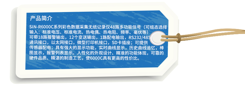 SIN-R6000C系列彩色無(wú)紙記錄儀48路萬(wàn)能輸入(可組態(tài)選擇輸入:標(biāo)準(zhǔn)電壓、標(biāo)準(zhǔn)電流、熱電偶、熱電阻、頻率、毫伏等)??蓭?8路報(bào)警輸出,12個(gè)變送輸出,RS232/485通訊接口,以太網(wǎng)接口,微型打印機(jī)接口和USB接口,SD卡插座;可提供傳感器配電;具有強(qiáng)大的顯示功能,實(shí)時(shí)曲線顯示,歷史曲線追憶,棒圖顯示,報(bào)警列表顯示。