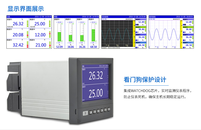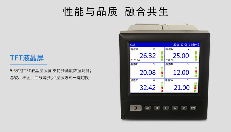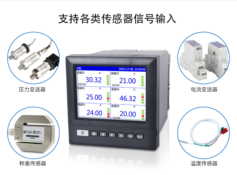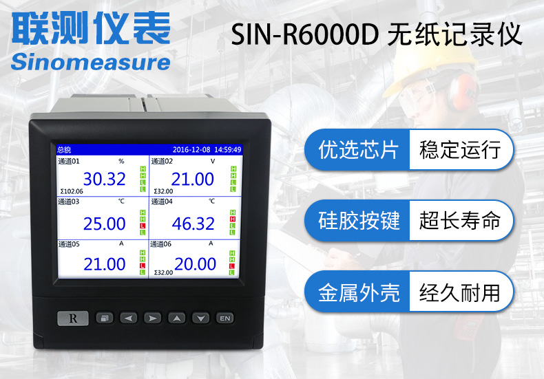 SIN-R6000D系列無紙記錄儀是一種高速高性能微處理器和5.6英寸彩色液晶顯示屏,對現(xiàn)場各種溫度、壓力、流量、電量等信號(hào)實(shí)現(xiàn)監(jiān)測、控制和記錄功能。 SIN-R6000D系列無紙記錄儀可自由組態(tài)輸入標(biāo)準(zhǔn)電流、標(biāo)準(zhǔn)電壓、熱電偶、熱電阻、頻率等信號(hào),可實(shí)現(xiàn)為傳感器配電和繼電器報(bào)警輸出,并且可通過U盤或通訊方式與上位機(jī)進(jìn)行數(shù)據(jù)交換。