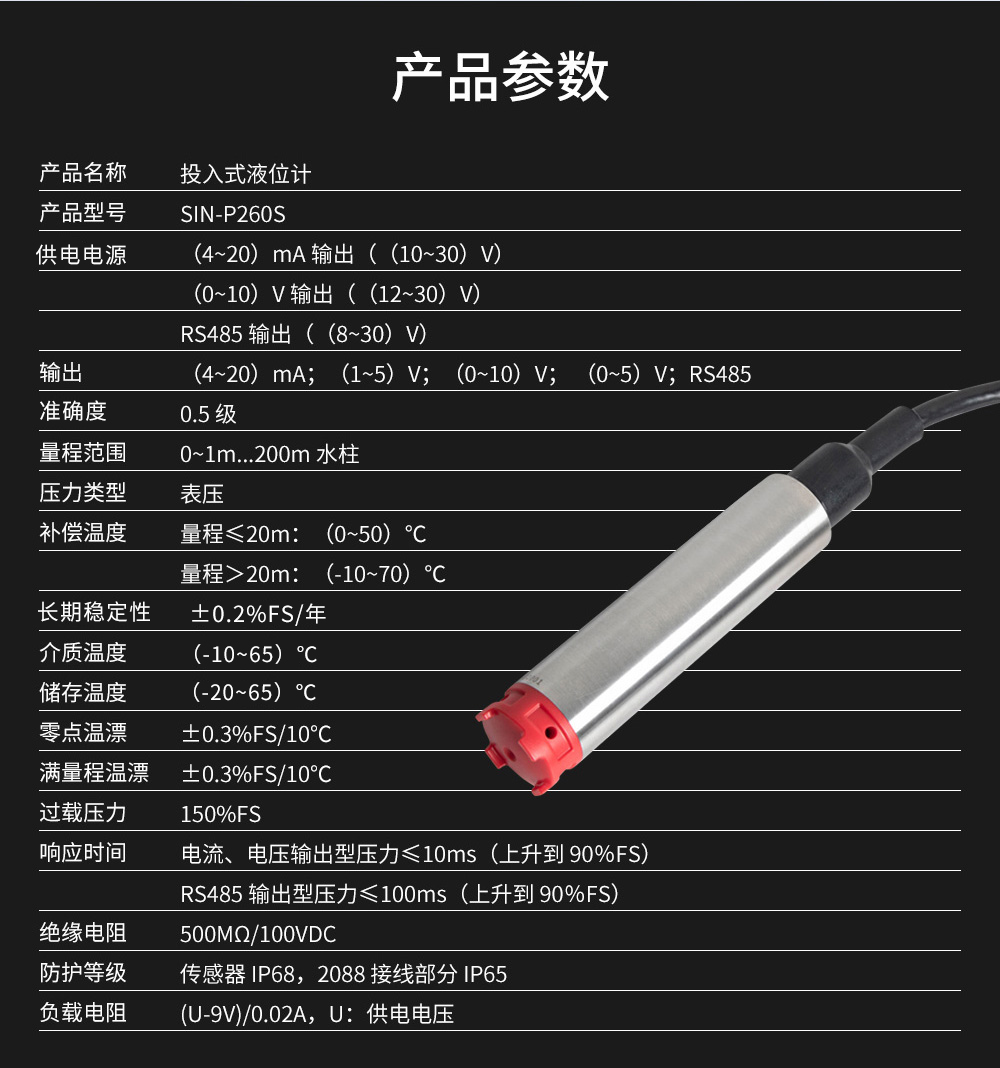 聯(lián)測儀表SIN-P260S新款投入式液位計(jì)