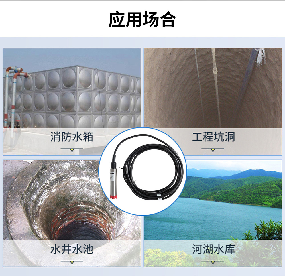 投入式液位變送器由高性能擴(kuò)散硅壓阻式壓力傳感器作為測量元件,把與液位深度成正比的液體靜壓力準(zhǔn)確測量出來,并經(jīng)過信號調(diào)理電路轉(zhuǎn)換成標(biāo)準(zhǔn)(電流或電壓)信號輸出,建立起輸出信號與液體深度的線性對應(yīng)關(guān)系,實(shí)現(xiàn)對液體深度的測量。